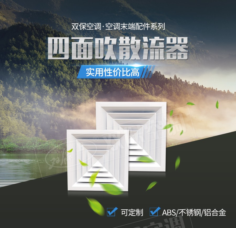 【產(chǎn)品名稱】四面吹散流器 【生產(chǎn)廠家】江蘇雙保空調(diào)有限公司